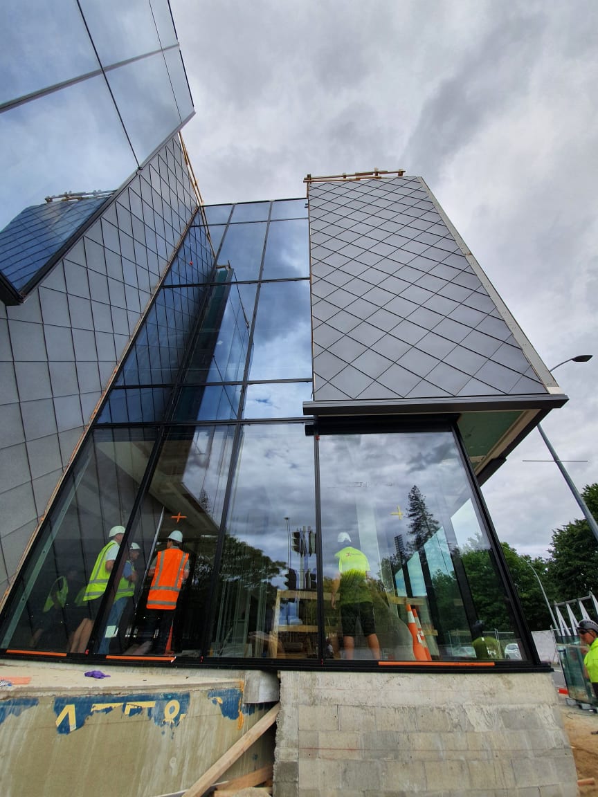 Glazing using sucker bank at Commercial Bay