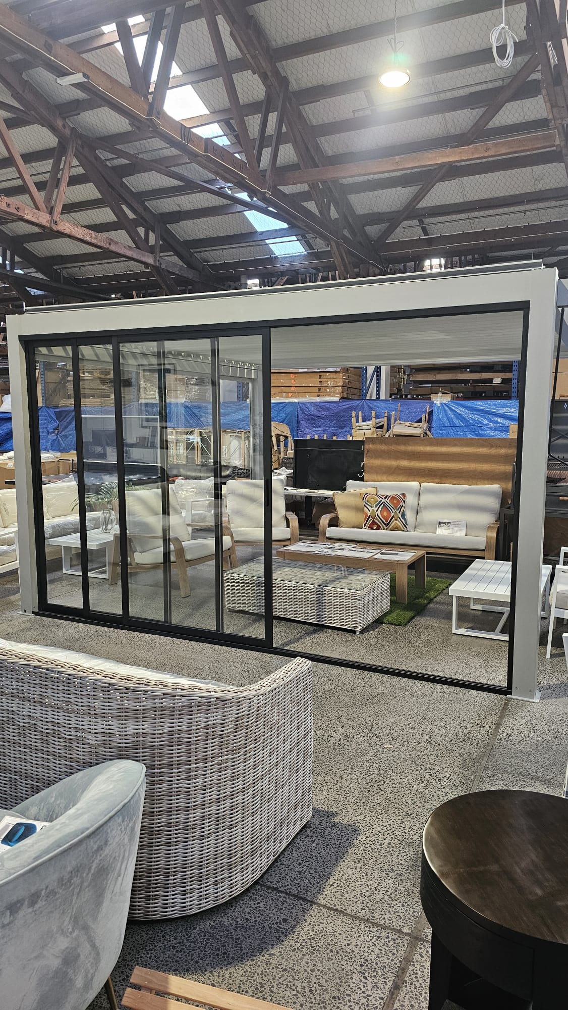 Pergola with glass sliding doors